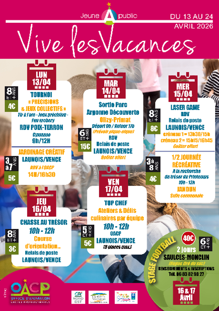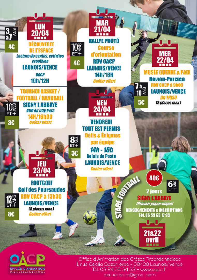 Nous sommes une association, agréée Espace de vie Sociale par la CAF, Education Populaire et Sport par le SDJES, qui a pour but de vous proposer des événements, activités et animations variées en itinérance sur l’ensemble du territoire des crêtes Préardennaises. L’OACP c’est : Une association loi 1901 qui accompagne depuis plus de 25 ans l’animation du territoire en terme d’activités Sportives, Culturelles, Multimédia et Loisirs, Education